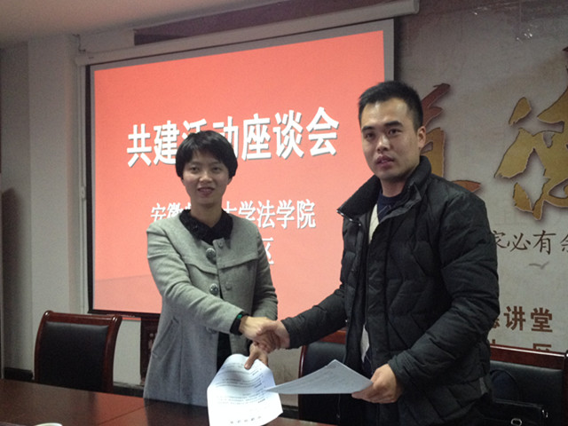 下午四点开始,陈兴宇与张后林到达签字现场会面,大家互相讨论相关事宜,交流意见。随后,双方就坐,开始正式商谈签字事宜和共建计划,陈兴宇代表bet36365路检测中心发表共建过程的初步设想,表示共建以后bet36365路检测中心作为具有专业法律素质人才的团体,认真负责为社区法律疑问进行解答,张后林表示建设法律社区援助中心是有益于社区居民,提高居民整体的法律保护意识。伍雪婷阐述了社区居民存在的法律问题,建议加强青少年的法律意识建设,提高居民的法律素养,使居民存在法律纠纷时,能够寻求及时有效的帮助。最终双方达成共识签字,并且合影留念。
