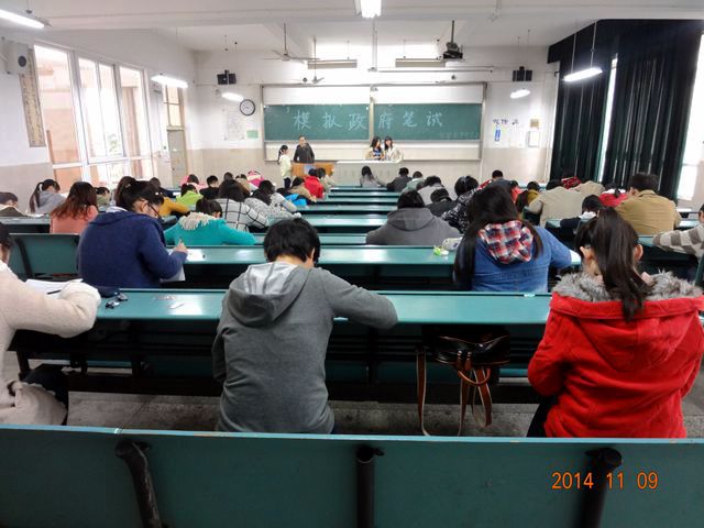 为了扩大社团影响,丰富校园文化,宣传与政府有关的系列知识,尤其是针对最近刚闭幕的中共十八届四中全会,进一步提高学生们的政治知识能力与综合素养,职业能力与发展研究会举办了模拟政府活动。11月9日上午,模拟政府系列活动之初赛以笔试的形式在教学楼区圆满落幕。