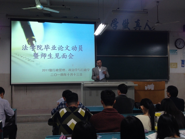 10月13日晚7时,11级政治学与行政学、行政管理专业召开毕业论文动员暨师生见面会,bet36365路检测中心党委组织委员何源章以及公共管理系诸位教师参加了此次会议。