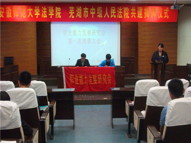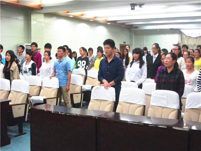 2014年10月18日下午,职业能力发展研究会第十一届理事大会在大学生活动中心模拟法庭召开。出席这次会议的有毕凌翔会长,闫泉分会长,各部门部长,院团委社团管理部代表及全体14级新任理事。此次大会由奏校歌,会长及部长发言,新任理事代表发言及宣读宣誓词四部分组成。