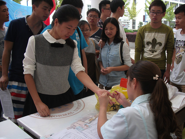 12点30分献血队伍就已经在大学生活动中心等待,10分钟左右,医疗人员组织大家登记填表、体检化验。虽然大家献血的热情很高,但是献血条件严谨,很多同学体检都没合格。最后13法学2班的献血队伍中只剩余洪祖强、凌琦、徐静三人符合献血标准。他们三人勇敢并且光荣地进入献血车内献出自己的一份爱心。与此同时,bet36365路检测中心院学生会积极开展后勤保障工作,设立了服务台,向同学们介绍献血注意事项。