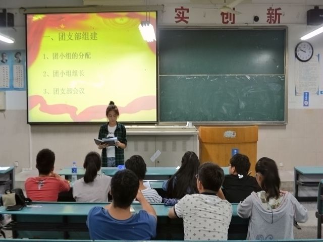 会议分为三个部分。第一部分向大家介绍了团小组分配和团小组组长选举这两方面需要遵循的规则,并指出团小组分配要结合空间环境、男女比例、性格等因素,以提高团员在参加活动时的积极性。第二部分则介绍了团支部会议开展中的注意事项,提出团小组活动应主题鲜明,避免形式单一的缺陷,此外还介绍了主题活动前、活动中和活动后应该注意的事项,指出团支部书记在活动之后要做好活动总结。第三部分,简要介绍了团支部在十月份即将开展的有关活动,即“校史校情学习”、“学唱国歌、团歌、校歌”、“三证颁发”和“团日活动”等。