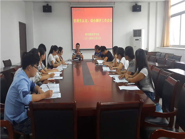 9月6日13级法学专业辅导员陈兴宇组织班级部分同学开展贫困生认定、综合测评工作会议。会议于早上8:00在行政楼四楼会议室召开。