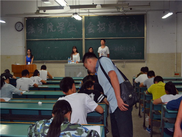 院学生会分别在教学楼多间教室进行了12个部门的笔试选拔。由各个部门的负责人担任监考。笔试题目新颖、结构合理,并且按照各自部门特色区别考察。参加考试的14级新生们沉着冷静、认真思考,有条不紊的答题,考场秩序井然,同学们都在规定时间内完成了考试内容。笔试过程中,13级法学专业辅导员陈兴宇及14级新生辅导员均来到现场观看同学们考试,为同学们加油打气,希望他们凭借自己的实力考出好成绩。