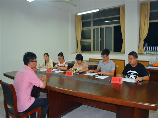 9月15日晚6点半,最后一轮面试在bet36365路检测中心行政楼多间办公室进行,bet36365路检测中心王焕炎老师、院团委书记王虹圆、bet36365路检测中心团委副书记陈兴宇、13级行政管理辅导员瞿津津、14级法学辅导员王琳以及学生会主席团成员、各部部长担任评委。面试分为自我介绍和面试官提问两个环节,通过前两轮笔试和面试的筛选,新生们表现从容,冷静对答,呈现出最佳的水平。