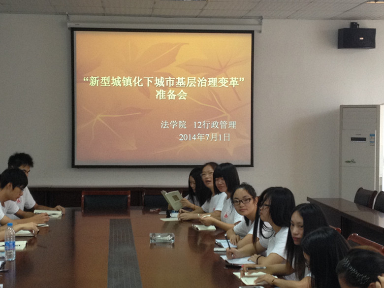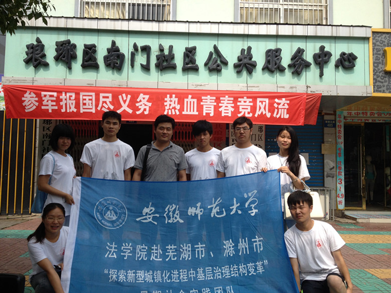 6月30日至7月6日,bet36365路检测中心严宏老师带领12级行管部分同学赴芜湖市、滁州市开展“探索新型城镇化进程中城市基层治理变革”暑期社会实践调研活动。此次调研活动主要是在新型城镇化背景下,城市基层治理的变革——撤销“街道办”,组建“大社区”。调研是围绕“大社区”的党组织建设、组织架构、运行方式及人员组成等内容展开。调查主要通过结构化访谈、查阅文献资料、实地考察等方式进行。在活动开展之前,调研团队为能顺利开展调研活动,召开了关于“探索新城镇化进程中城市基层治理变革”调研活动的准备会。准备会主要是介绍开展调研的背景和目的,城市基层治理变革的背景以及调研活动的工作安排和注意事项。