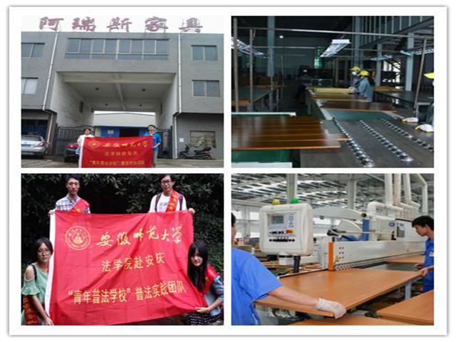 安庆分队首先对本次普法实践活动进行了积极的动员与安排,制作了普法宣传手册、法律知识小传单、普法宣传展板等,多种渠道进行普法宣讲。在负责人的带领下主要开展了“进车间”普法活动,团队成员参观了工厂车间,了解了车间一线工人的工作状况。针对工厂工人对公司一些运作、工作权利等方面的问题发表了看法,并以《合同法》《劳动法》等法律为依据向广大工作人员普及相关法律内容,以帮助他们更好的维护自身权益。