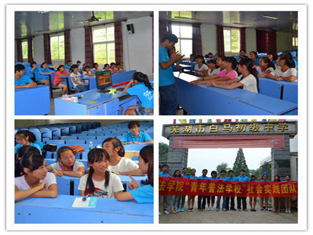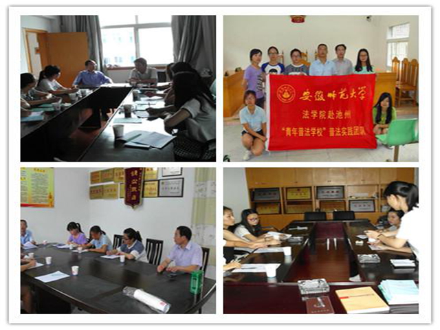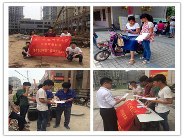 为增强不同群体的法律意识,学会维护自身合法利益,2014年bet36365路检测中心“青年普法学校”暑期普法实践团队围绕普法“六进”即“进学校”“进社区”“进机关”“进乡村”“进车间”“进工地”的主题,由总队和5支分队分别奔赴安徽省各地级市,针对不同的群体,拟定各种不同方案,进行暑期实践普法活动。