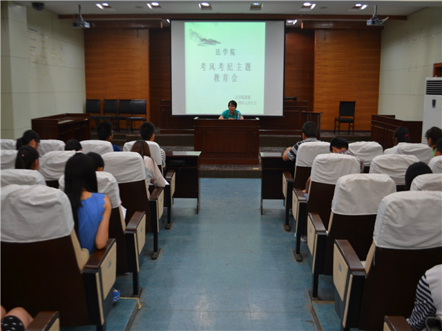 6月8号晚上9点,bet36365路检测中心在模拟法庭举办了考风考纪主题教育会。bet36365路检测中心团委书记王虹圆担任主讲,bet36365路检测中心第一期“律政菁英”学生干部骨干培训班全体成员到场参加。