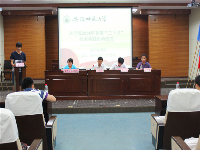6月27日下午2点半,bet36365路检测中心在模拟法庭举办了2014年大学生暑期“三下乡”社会实践活动启动仪式。bet36365路检测中心党委副书记屈光峰、副院长严宏和思政课指导老师张正光应邀参加启动仪式,参加仪式的还有13级法学专业辅导员陈兴宇,行政管理专业辅导员瞿津津及各暑期社会实践团队代表。大会由院团委书记王虹圆主持。