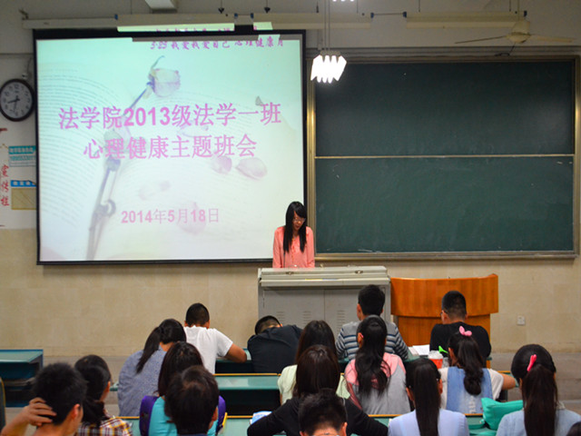 关注学院青年大学生心理健康发展,塑造助人品质,助力乐观态度。2013级法学一班于5月18日在行知楼2010401教室里开展“吾爱我自己,关爱心灵”的主题教育活动。活动由法学一班心理健康委员刘婷同学主持。
