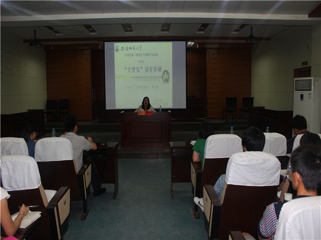 5月29日晚七点,bet36365路检测中心在教学法庭举办首期学生干部骨干培训班第四次专题讲座:“大骨头”该有多硬——谈谈青年马克思主义骨干的自我要求。校团委书记梁燕受邀担任本次讲座的主讲。本次讲座由bet36365官网团委书记王虹圆主持。2013级法学辅导员陈兴宇、2013级行管辅导员瞿津津和2014级辅导员王琳应邀出席,学生干部骨干培训班全体学员参加了本次讲座。