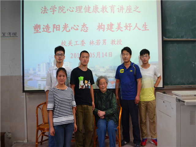 满头银发却又精神矍铄的林若男教授刚站上讲台,就迎来了同学们热烈的掌声。林教授面带微笑地向同学们打了个招呼,开始阐述起今天讲座的主题----塑造阳光心态,构建美好人生。在谈到如何才能塑造阳光心态时,林教授认为最重要的是做到以下四点:改变自己,适应环境;面对现实,合理定位;懂得感恩,延伸大爱;活在当下,把握现在。林教授结合个人亲身经历,针对这四点声情并茂的讲述了自己在学习和工作方面的丰富经历,详细阐释了这四点的深刻含义。林教授最后说,人生就是一个括号,在哭声中来,在哭声中去,我们的任务就是充实它,填满它。