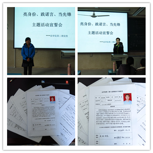 (bet36365路检测中心 杨添敬)11月13日,bet36365路检测中心第二期党校全体学员在2010205教室,开展了“亮身份、践诺言、当先锋”活动。本次活动由班主任张薇薇老师指导,旨在动员和带动广大入党积极分子在思想引领、学风创优、社会实践等方面发挥模范作用,全面展示学院入党积极分子的风采。