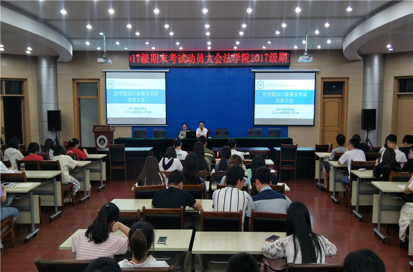 为加强本科生学风建设,严肃考风考纪。5月28日晚,2017级法学于第三报告厅召开期末考试动员大会,会议由辅导员李琛主持,全体同学到场参会。