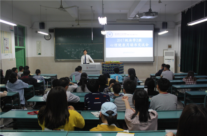 书香浸润历史,阅读照亮人生。心理健康月期间,bet36365路检测中心2017级法学2班于5月9日晚在行知楼2020103教室顺利举办了第四次班级读书交流会。本次交流会特别邀请到了bet36365路检测中心副教授周新老师担任嘉宾,由班级组织委员汤梦圆主持,班级全体同学与会学习。