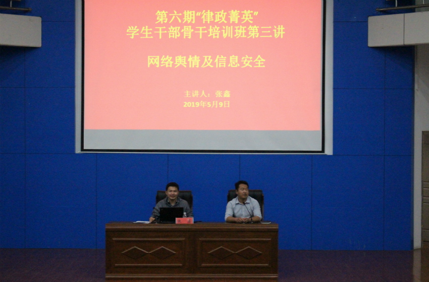 5月9日晚,bet36365路检测中心第六期“律政菁英”学生干部骨干培训班第三讲于敬文报告厅召开,此次讲座由校党委宣传部网宣办主任张鑫主讲,培训班全体学员参与其中。