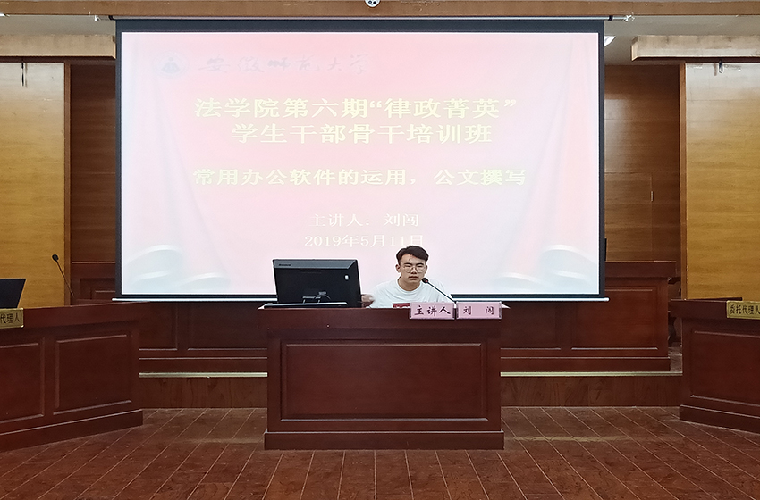 5月11日,bet36365路检测中心于模拟法庭举办第六期“律政菁英”学生干部骨干培训班第四讲。学院第五届团委学生副书记刘闯受邀担任此次主讲人,培训班成员参与。