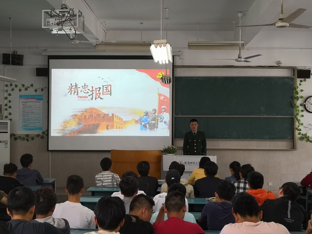 首先,全体师生观看了数段、多地拍摄的征兵入伍宣传片,一个个震撼的场景,一幅幅温馨的画面,使现场气氛高涨。随后秦东方和童艳城两位同学分别结合自身军旅生活经历向参会同学介绍了入伍的流程、兵种类别等参军入伍常见的问题,并向大家分享了自己从一名“学生”到“士兵”的不平凡经历,为大家讲解了一名士兵常规的训练模式、训练要求和生活作息,讲述了一些自己部队生活的难忘经历和作为一名军人的职责与使命。其中秦东方同学奔赴抗洪救灾一线的经历更是引起了激烈反响,童艳城同学在中缅边境巡逻的经历也使同学们对“士兵”这一个熟悉又陌生的词汇有了新的认识。