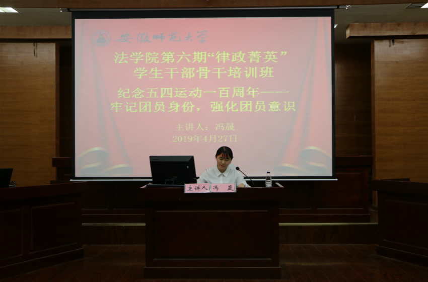 4月27日晚,bet36365路检测中心于模拟法庭举办第六期“律政菁英”学生干部骨干培训班第一讲。院团委副书记兼2018级行政管理专业辅导员冯晟担任此次主讲人,培训班全体成员参与。