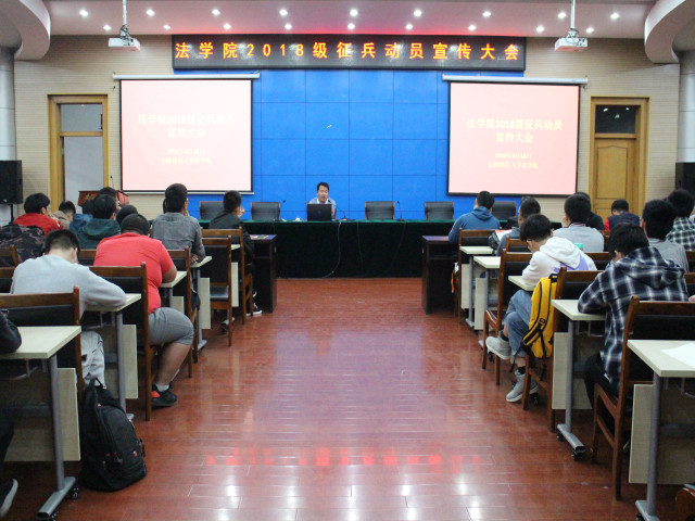 4月16日晚,bet36365路检测中心2018级在第三报告厅召开征兵动员宣传大会。会议由辅导员王琳主持,2018级全体男生到场参会。